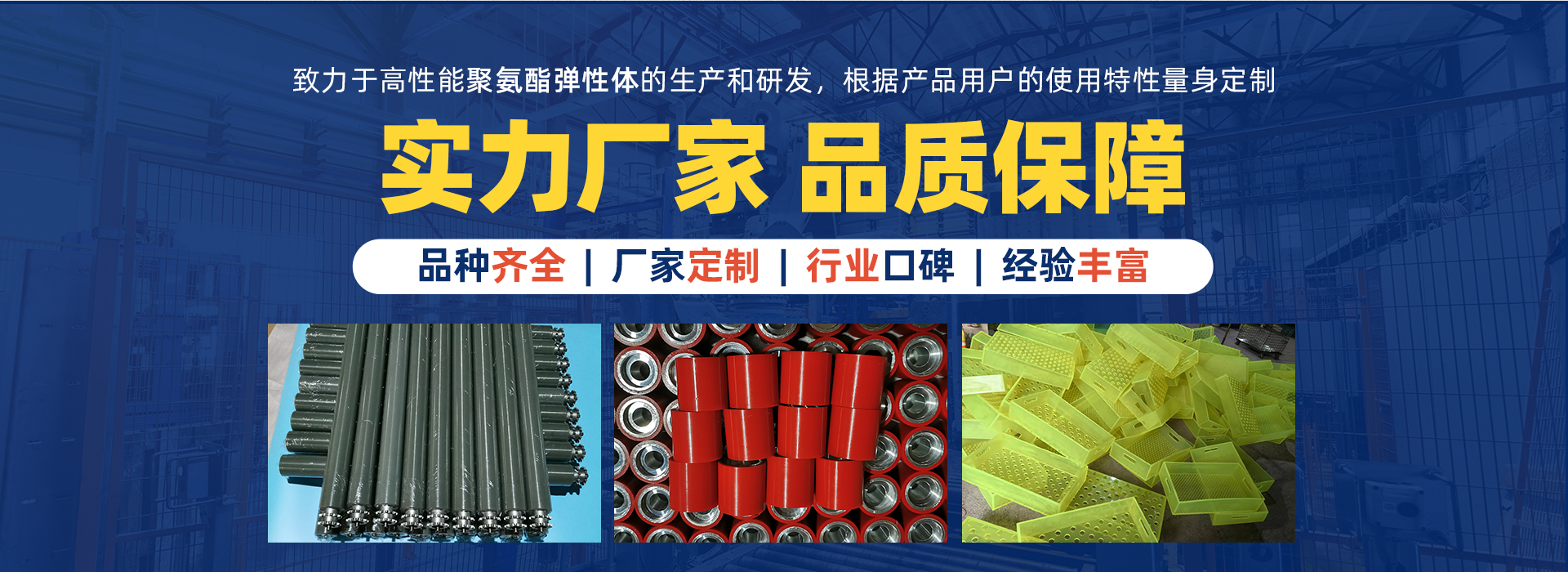 蘇州凱騰聚氨酯制品有限公司多年來一直致力于高性能聚氨酯彈性體的生產(chǎn)和研發(fā)。鑒于聚氨酯彈性體的特殊的出色性能,幾乎所有的工業(yè)系統(tǒng)中都會使用到聚氨酯彈性體的產(chǎn)品,我們的產(chǎn)品服務(wù)于眾多的行業(yè)如:石油、礦山、冶金、工程機(jī)械、汽車制造、多晶硅生產(chǎn)、核工業(yè)項目、紡織印染包裝、農(nóng)牧、金屬加工、水泥陶瓷、糧食碼頭、物流倉儲自動化、粉體成型與研磨等等;由于不同的行業(yè)和工況條件對聚氨酯彈性體的產(chǎn)品的使用性能要求是不同的,我們可以根據(jù)用戶產(chǎn)品特別的使用特性專門為用戶量身定制產(chǎn)品。 了解更多+